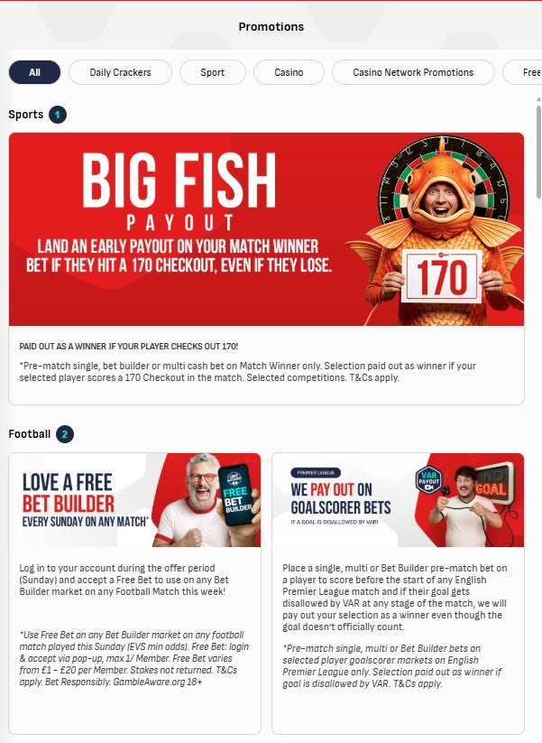 It’s also worth checking whether you can place a bet builder or if the bookmaker offers special offers on your chosen sport.