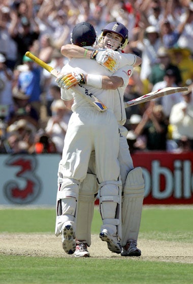 Together the pair continued their mission of dragging England back into this series, which they had started in the second innings at Brisbane. There, they shared 153 and were both out in the nineties. Reunited six days later, they moved inexorably onward and upward. Their stand was unbroken on 108 overnight and they left record after record in their wake. It meant that Andrew Flintoff was able to declare England's innings at 551 for 6. They had scored almost 400 runs more and batted for 100 overs more than they had in their first innings at Brisbane. It was an epic riposte, embodied by Collingwood's innings.