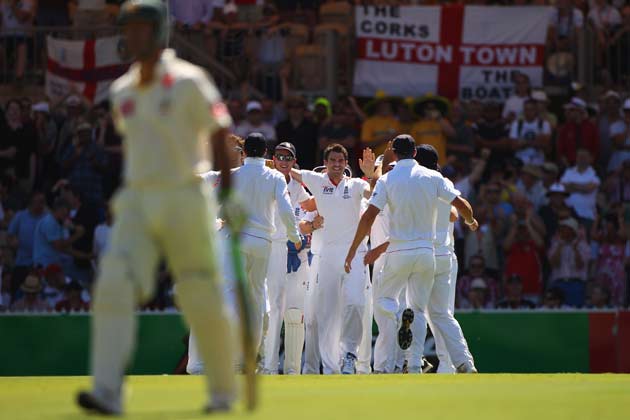 Jimmy Anderson was outstanding throughout, removing Ricky Ponting and Michael Clarke after Simon Katich had been dismissed for a diamond duck to produce that extraordinary scorecard. He took two for 18 in his first seven-over spell, and sent back Shane Watson in his first over. With the second new ball, he accounted for Peter Siddle to finish with four for 51 from 19 overs.