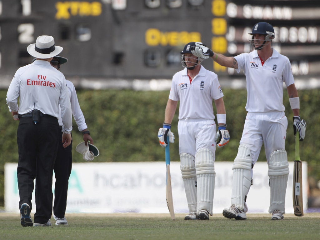 As an unamused Dilshan shuffled in for the next ball he again pulled out. Rauf had a word with Pietersen and, it was to transpire, issued an official warning. Unruffled, Pietersen merely changed his grip later and still played an outrageous reverse shot, ran a rapid two and had his 20th Test hundred, his 29th in all internationals, an England record.