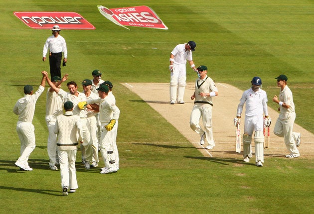 The team led by Andrew Strauss as captain and guided by Andy Flower as coach had come to Leeds with the Ashes to play for and had spurned the opportunity to do so. Confronted with opponents as determined as boy scouts and as well-drilled as a troupe of dancing girls, they simply panicked. It was grotesque to watch partly because it revealed that the suspicions held by many about the fitness for purpose of the English cricketer under pressure might have some merit.