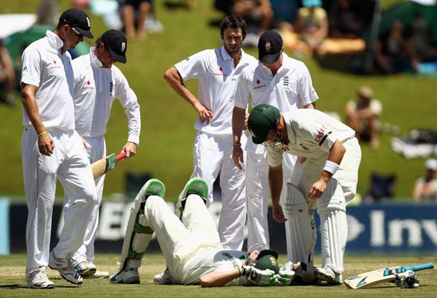 Graham Onions fells Morkel, an extremely fast bowler, with a lifting ball which strikes the batsman on the neck. When a similar thing happened to England's Devon Malcolm at The Oval in 1994 he told the South Africans: "You guys are history" and promptly took 9 for 57 by way of vengeance. England should worry.