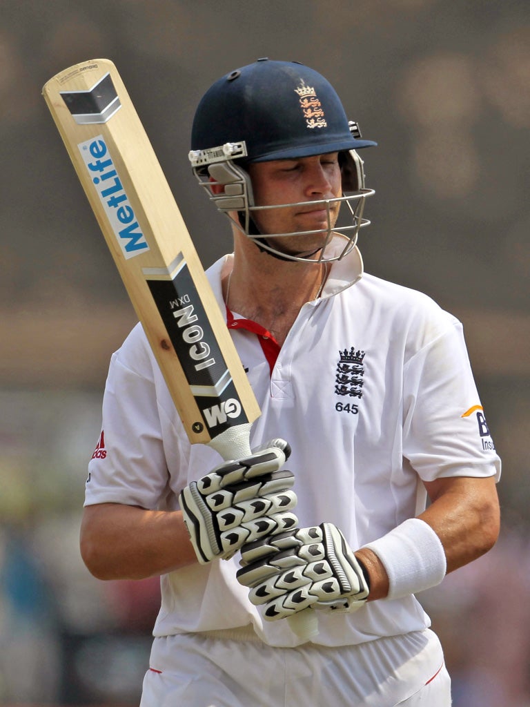 It was as though they had made a pre-ordained plan to get 'em in singles. At last, here was the composure that international batting requires. It had not been demonstrated earlier in the day by Kevin Pietersen, who advanced down the pitch in the third over and hacked to short midwicket, or by Ian Bell, who was probably unlucky to be given out lbw but played a careless, flimsy paddle shot which invited the appeal.