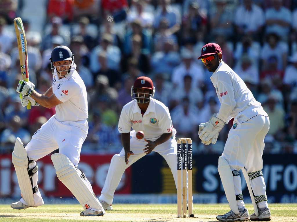 This innings will have bought him precious time in the way that Strauss's 122 at Lord's ensured the criticism abated. The tourists knew they could not afford to hang around yesterday morning. Despite the heroic endeavours of Sammy and Samuels, who had reached his third Test century on Friday night, they were still some distance short of a workable score on a flat pitch.
