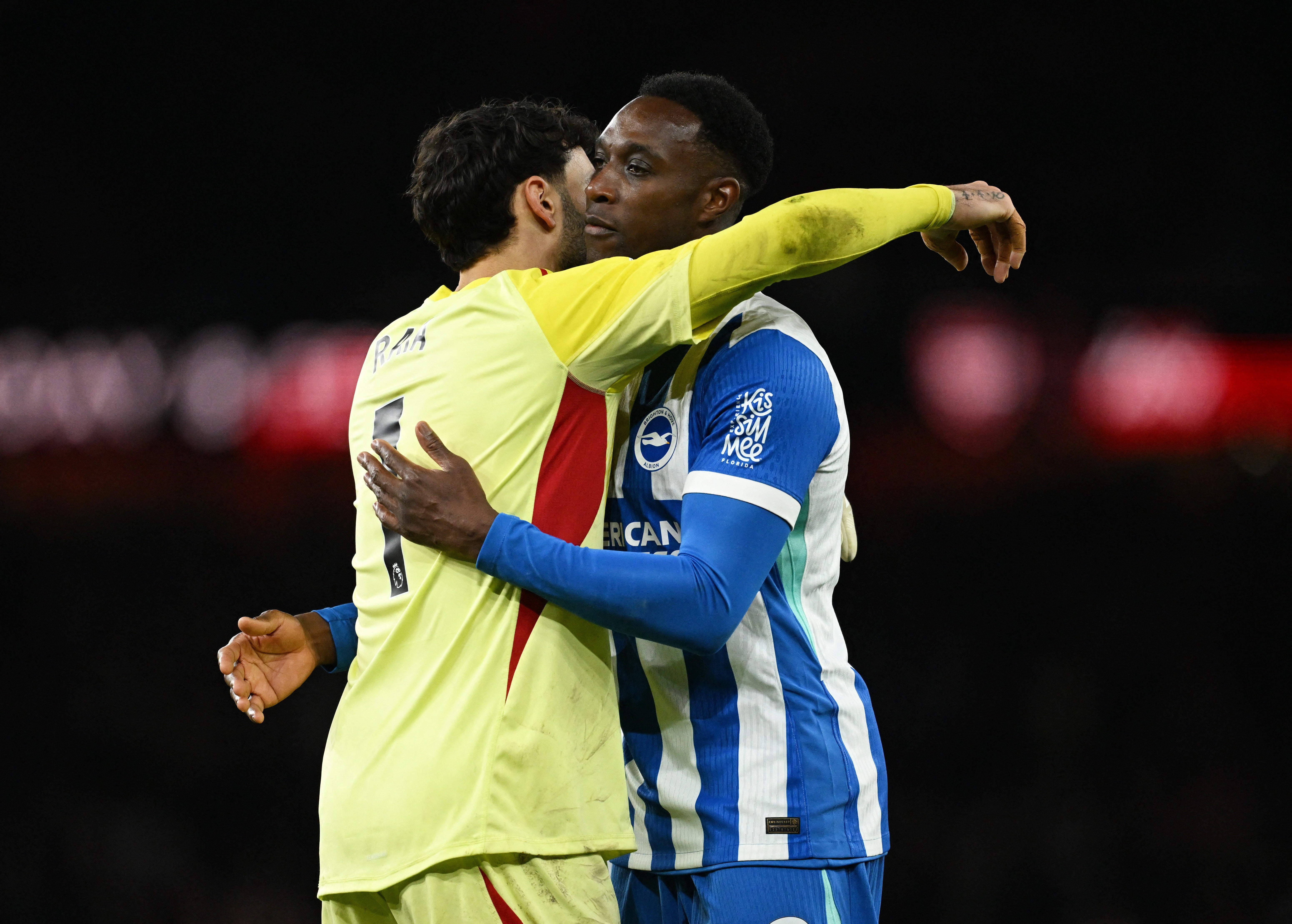 Brighton had offered next to nothing as an attacking force until Diego Gomez slammed in a rebound on 64 minutes after Yasin Ayari’s shot came back off the post and would have equalised had Arsenal keeper David Raya not produced a stunning save to keep out Yankuba Minteh’s curling effort. It was a nervy finish but the Gunners held on to climb back top.