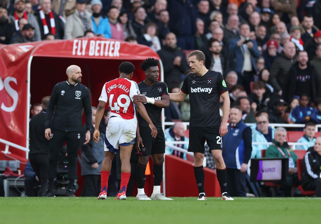 Jarrod Bowen scored what would prove to be the only goal of the game on the stroke of half-time before Gunners substitute Myles Lewis-Skelly was sent off with 18 minutes remaining.