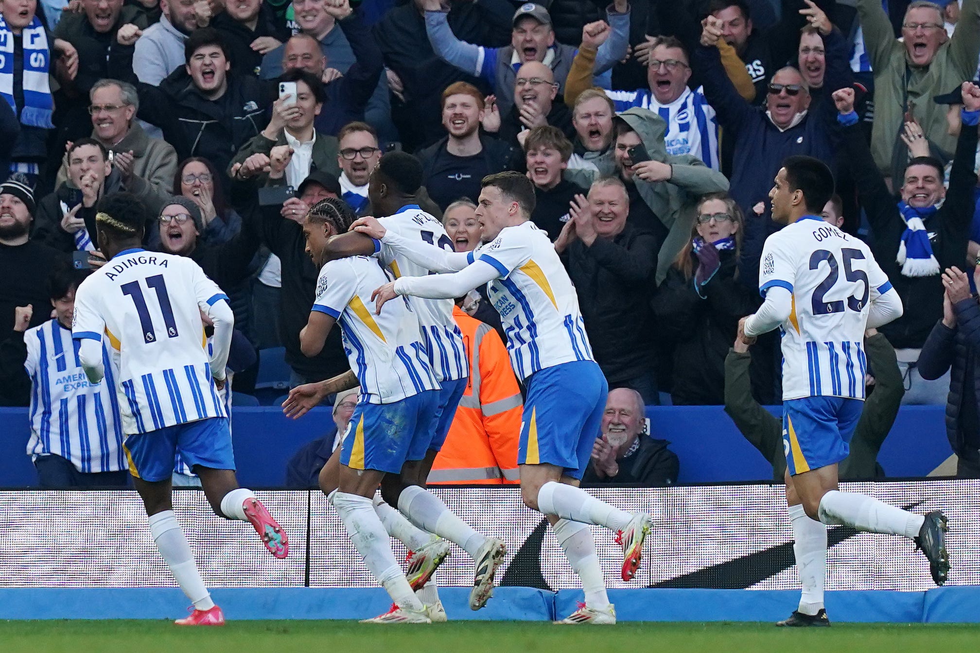 Kaoru Mitoma, passed fit despite going off at Newcastle last weekend, and Simon Adingra both had goals ruled out for offside as the hosts poured forward.