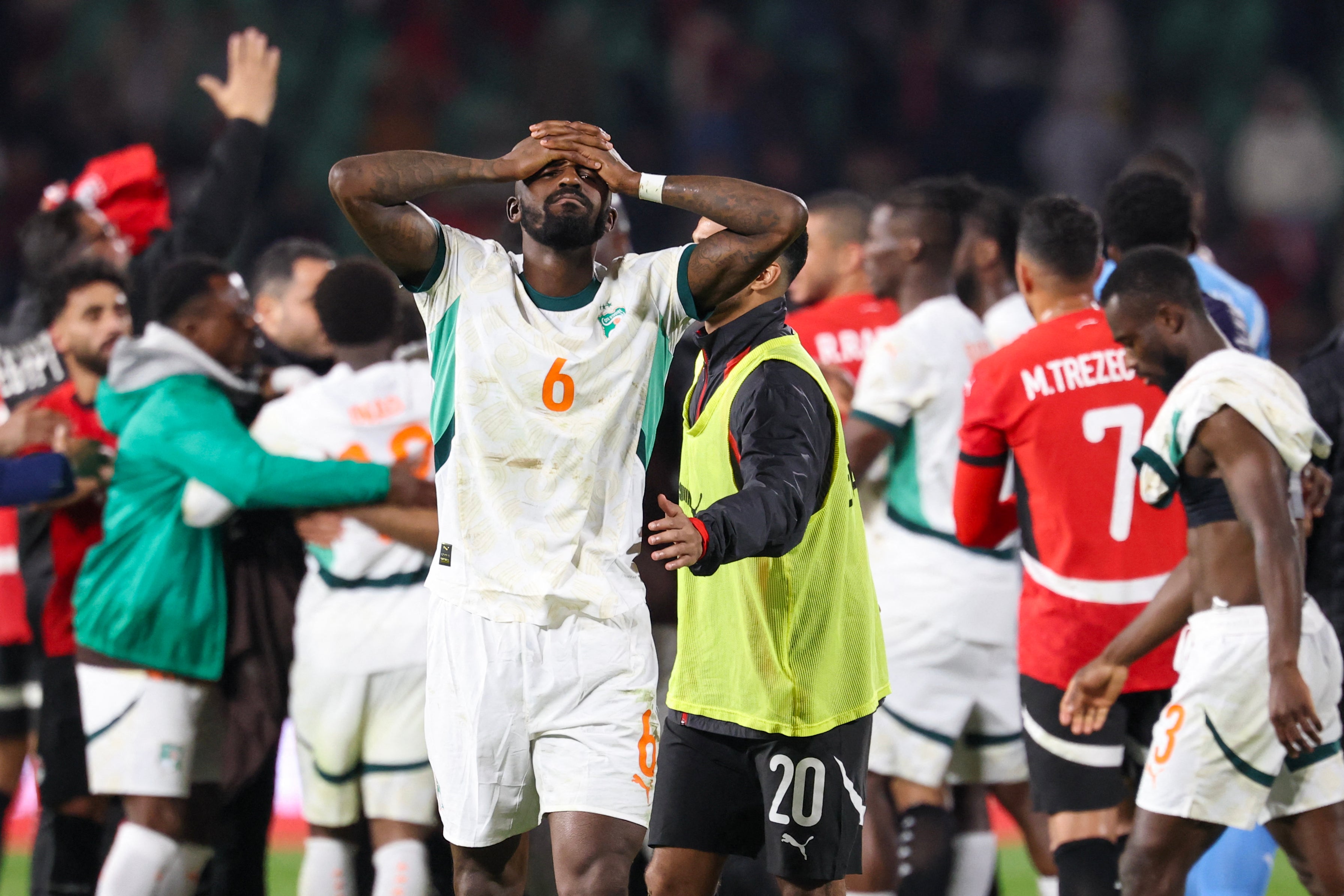 And the Pharaohs found themselves two ahead soon enough, with Rami Rabia rising to loop a superb header over Fofana in goal, but Yan Diomande gave Ivory Coast a lifeline before half-time as his free-kick was turned into his own net by Ahmed Abou El Fotouh.