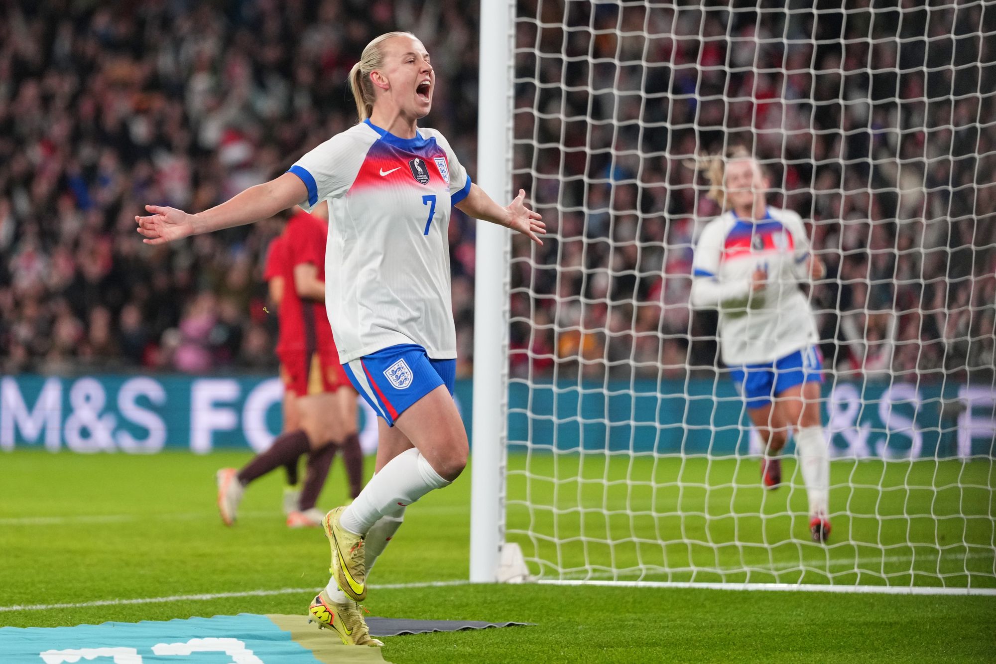 Sarina Wiegman’s team were rampant from the start and scored three goals in just four first-half minutes as Mead netted a quickfire brace and Hemp then made it three. Stanway scored twice before the interval and then completed her hat-trick after the break, as Toone and Russo got in on the act against the Asian champions.