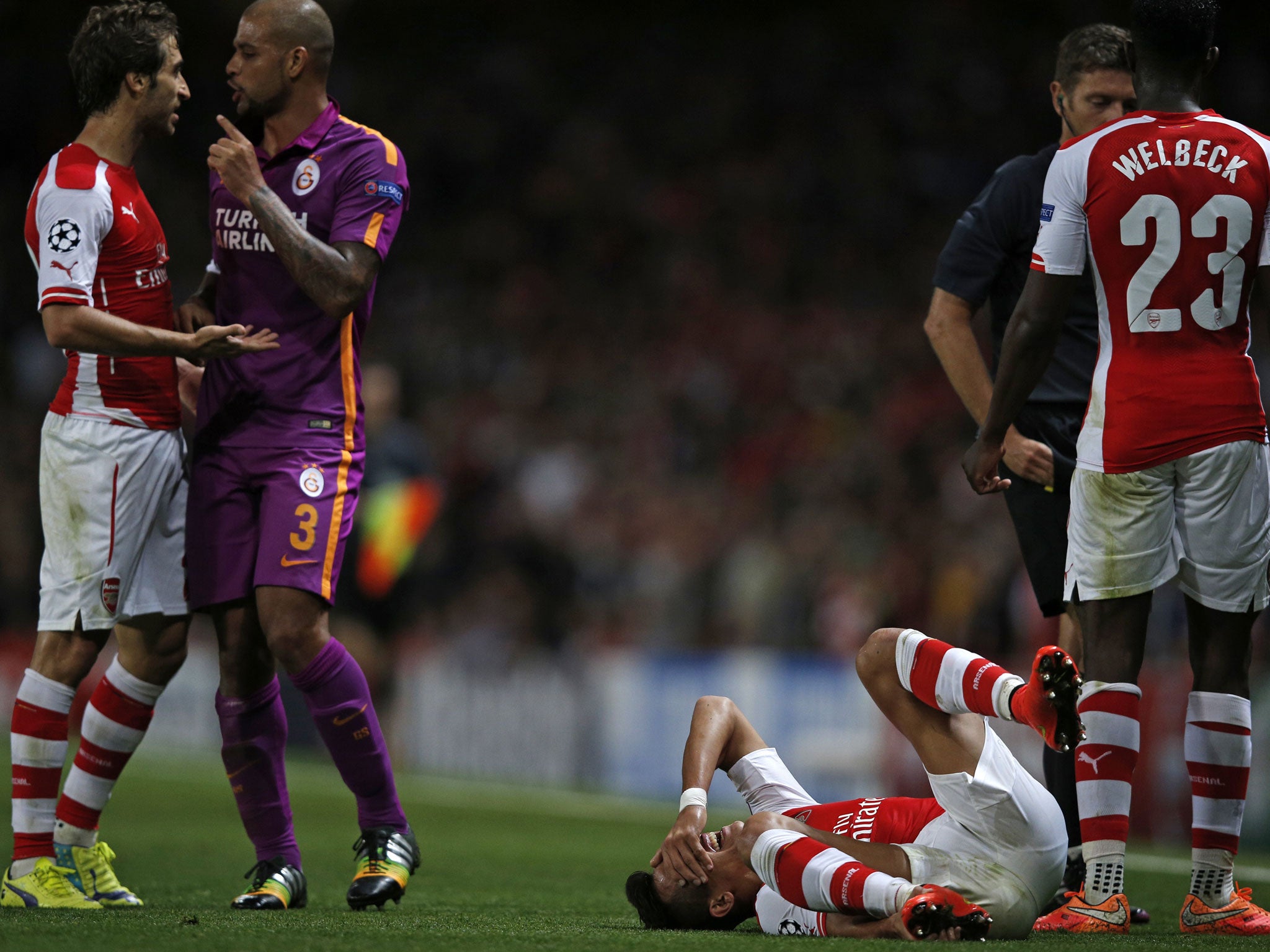 Sanchez was the subject of an extremely heavy challenge from Galatasaray's Felipe Melo, one that should have had the Brazilian seeing red, Wenger said in his post-match press conference.