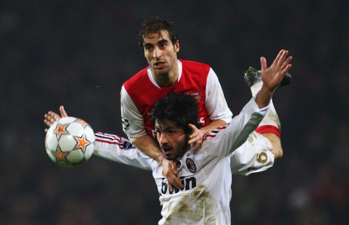 Back to that 10-minute spell when Arsenal had Milan on the rack shortly after Nesta's injury. The architects of the most brilliant raids were Alexander Hleb and Cesc Fabregas who, in that brief spell, passed the ball through spaces in the Milan defence that the Italians did not seem to be aware existed. The pick of these early moves was a spectacular sweeping affair in the 52nd minute that shaped up to be the best goal of Arsenal's season.