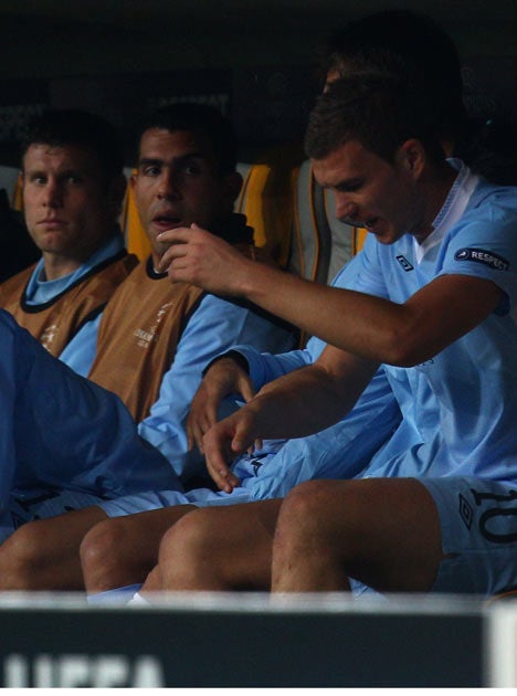 But Mancini also had to contend with a strop from Edin Dzeko, who took exception to being replaced by Nigel de Jong 10 minutes into the second half as City tried to stop themselves being submerged in their opponents' bombardment.