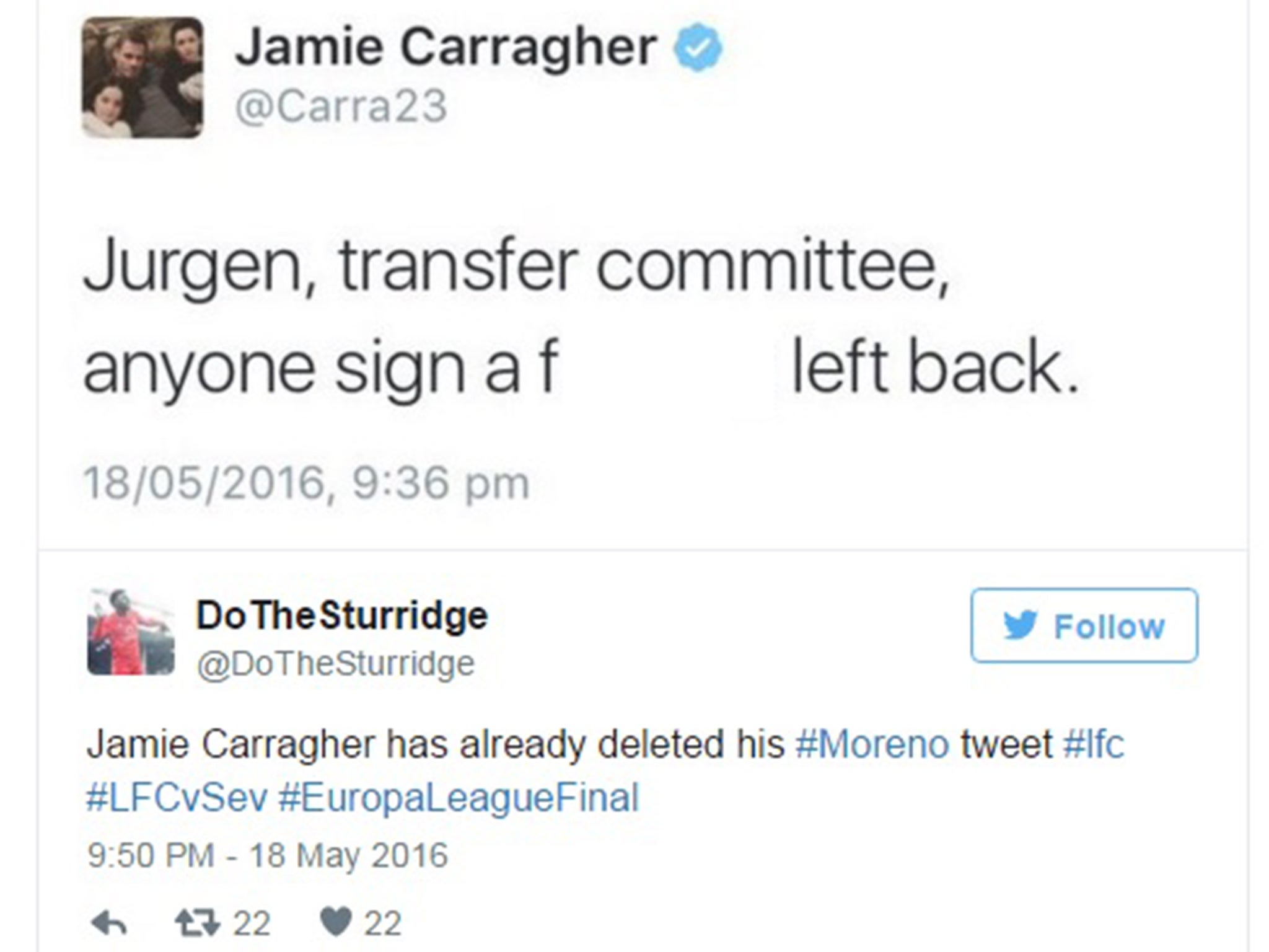 One such supporter, however - former captain Jamie Carragher - had his message paid more attention to than most - slagging off the part played by Alberto Moreno in the build-up to Sevilla's clinching third goal.