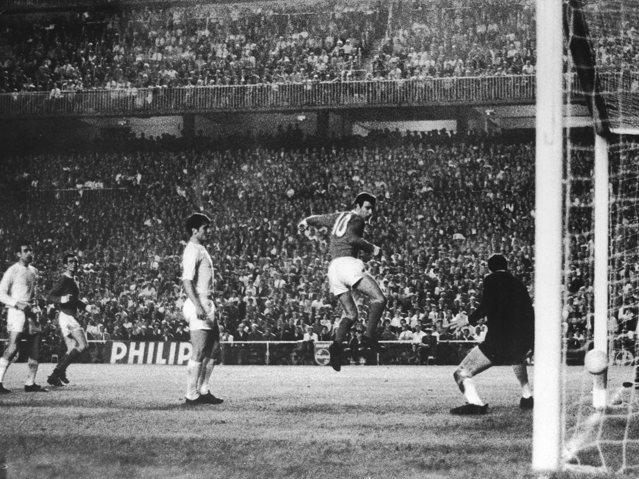 1967-68 European Cup semi-final first leg, April 24: Manchester United 1 (Best) Real Madrid 0