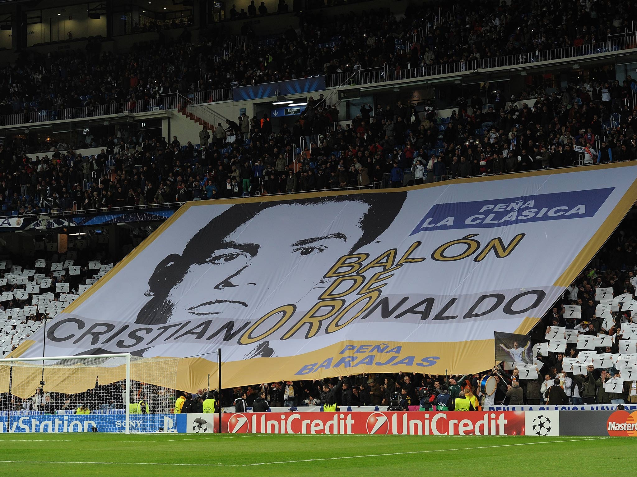 The stunt was organised by two supporters' groups who were eager for the club to show their support for Ronaldo in the battle to win the Fifa Ballon d'Or award, which recognises the best player on the planet.