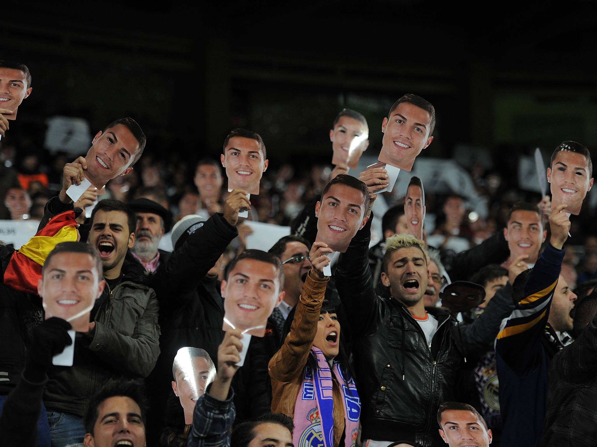 Real Madrid officials sanctioned the face masks and a few banners to allow their hard to please supporters to show who they believe is the best player on the planet.