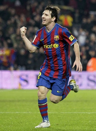 However the election turns out, it is hard to foresee Guardiola walking away from a group of players good enough and young enough to dominate European football for a long time to come. Leo Messi (right) scored twice in this victory. With his first strike he became, at 22, the youngest player in Barcelona's history to reach 100 goals and with his second goal he became the top scorer in Spain this season with 14. "He can go on to break all the records if he wants to – 101 goals at 22 is incredible," said Guardiola.