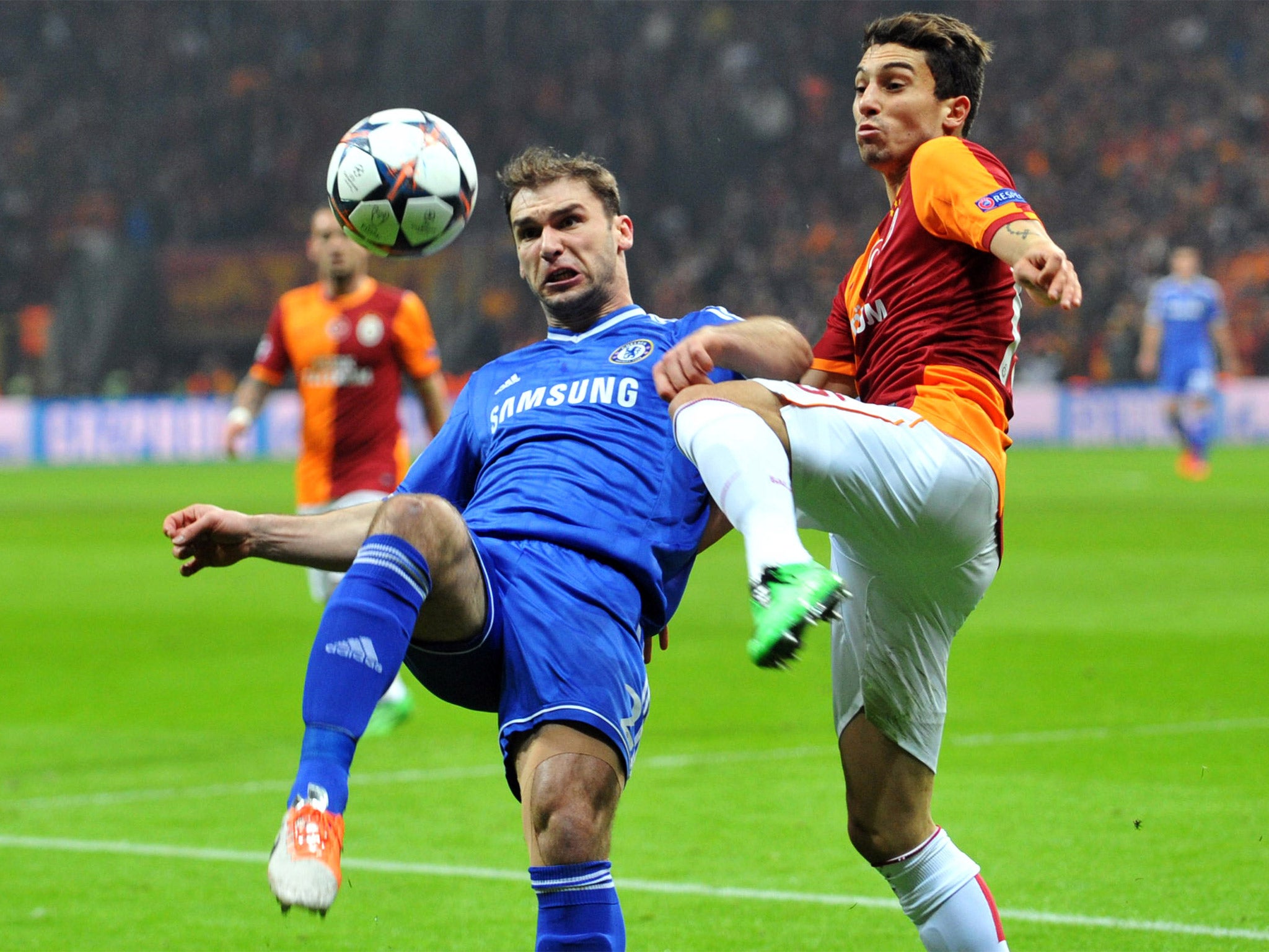 Despite a dominant first half, Galatasaray responded after a stern team-talk from former Manchester City manager Roberto Mancini, now in charge at the Turk Telecom Arena, and notched an equaliser when Chedjou lost his marker John Terry and volleyed in Wesley Sneijder's corner from close range.