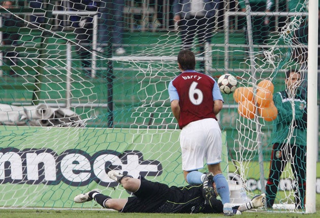 Litex had a second player dismissed when full-back Venkov punched the ball off the line. Barry's aim was true from 12 yards and Villa were ahead.