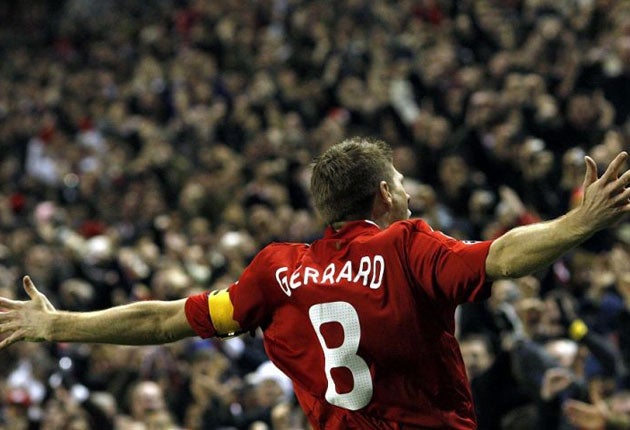 Gerrard struck twice on his 100th European appearance for Liverpool to secure a quite breathtaking victory, Real were humbled for the second time in a fortnight by their old boy Rafael Benitez.
