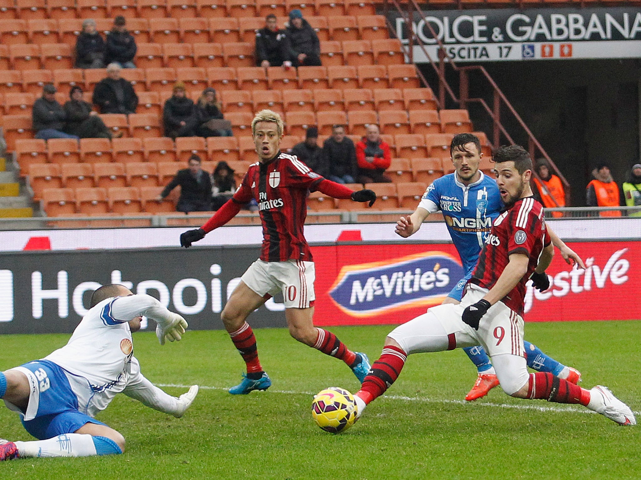 Despite Milan’s proactive January transfer window, the club have failed to establish a rhythm, garnering just five points in the seven rounds played so far in 2015. Empoli controlled possession for large stretches, threatening just under 10 minutes with efforts from Manuel Pucciarelli and Mario Rui.
