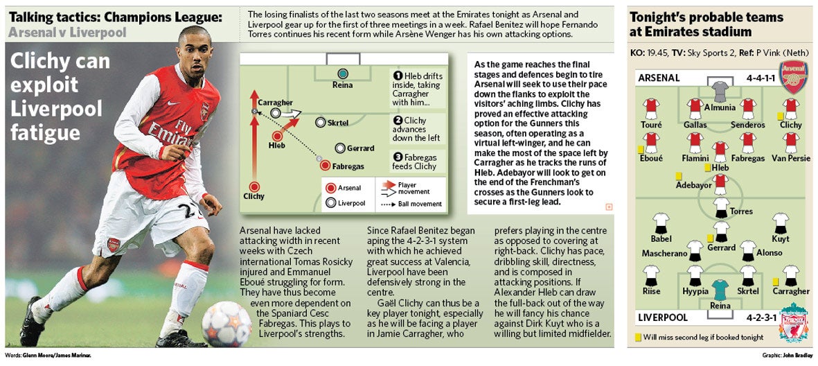 Whatever happened, life has changed since then. As they face Arsenal tonight in the Champions League in the first of three games against the same opponents in a week, Benitez has settled upon a team and a formation. Once upon a time a defeat, like the one to United on 23 March, would have meant a complete reinvention of his team but in the following game, last Sunday against Everton, Benitez dropped only his two full-backs, Alvaro Arbeloa and Fabio Aurelio. There are minor changes. Steven Gerrard, Fernando Torres, Jamie Carragher, Javier Mascherano, Xabi Alonso and Kuyt are playing regularly. Ryan Babel and Martin Skrtel are virtually assured of a first-team place. Every 4-2-3-1 formation is not identical but it is recognisable and the teamsheet is not the box of tricks it once was.