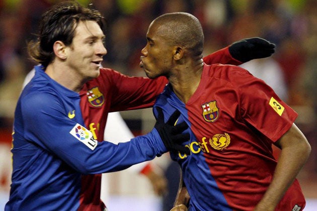 Seville had only conceded eight all season but having picked Samuel Eto'o's 14th league goal of the season out of his net in the first half, Andres Palop went head to head with Messi twice in the second period and lost hands down both times.