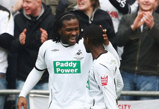 Swansea (4-3-3): De Vries; Rangel, Williams, Monk, Tate; Gomez, Britton, Allen (Bauza, 81); Dyer, Scotland, Gower (Orlandi, 71). Substitutes not used: Cornell, Tudur-Jones, Bessone, Serran, Butler.