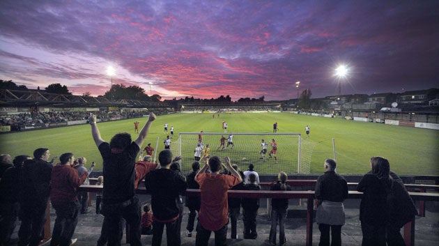 Football did not rally round in 1962 and if Burnley's role in Accrington's demise was questionable then on Tuesday they staged a benefit game for Stanley at Turf Moor. More than 5,000 watched in driving rain, raising £35,000. On Friday evening, as the Pennine hills that frame the Crown Ground glowed pink in the September sunset, Accrington played some exhilarating football in front of a crowd of 3,228, proof that the Crown is of more use than it would be as a branch of B&Q. On the final whistle, fans waving what appears to be a giant Swiss flag launched into a chorus of "Kill the taxman".