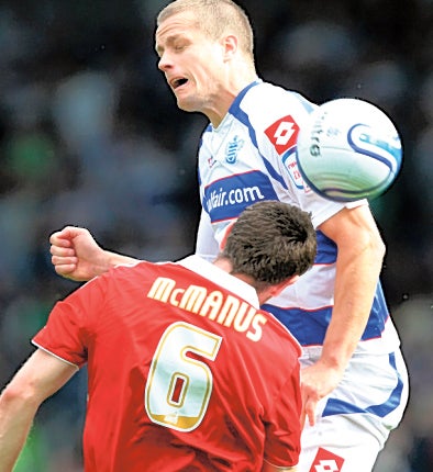 Three goals in 10 minutes at the start of the second half at Loftus Road saw Queens Park Rangers extend their goal-difference lead at the top of the Championship with a 3-0 defeat of Middlesbrough. Boro won this fixture 5-1 last season and had the better of the first half. But the QPR manager Neil Warnock's half-time pep talk saw goals by Heidar Helguson, from the penalty spot after he ha been fouled by Barry Robson, Hogan Ephraim and James Mackie maintain their 100 per cent home record.