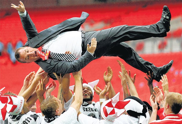 That is not the only reason Swansea will not be following the likes of Bradford City and Hull City in spending the future. The golden era of the early eighties had an unhappy ending. Promoted in 1981 under John Toshack – who was at Wembley yesterday – Swansea lasted just two seasons then slid down the leagues. By 1986, having overdone the wage bill in the top flight, they faced a winding-up order and were heading for the Fourth Division.