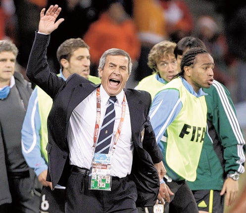 He says that European countries are snapping up Uruguayan players at an ever-younger age, sometimes in their mid-teens, and although the country produces players at an impressive rate, it does not have the chance to develop them. Before Tuesday's game, a philosophical Tabarez said it would be impossible for Uruguay to stay among the elite, even if they won the World Cup.