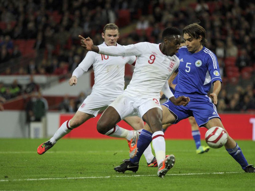 England ran into the usual problems of trying to be too intricate in picking their way through the nine men ranged on the edge of the San Marino area. After Simoncini's challenge on Walcott, the winger was replaced by Aaron Lennon, his first cap since the Algeria group game at the 2010 World Cup finals.