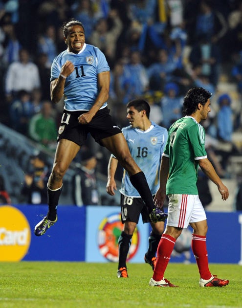 The Uruguayans dominated much of the match but failed to add to their score. Forlan hit the inside of the post with a low shot in the 30th minute and it was only in the final 20 minutes that Mexico turned up the heat.