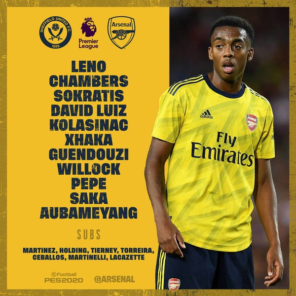 Arsenal: Leno, Chambers, Holding, Luiz, Tierney, Torreira, Xhaka, Guendouzi, Pepe, Aubameyang, Saka