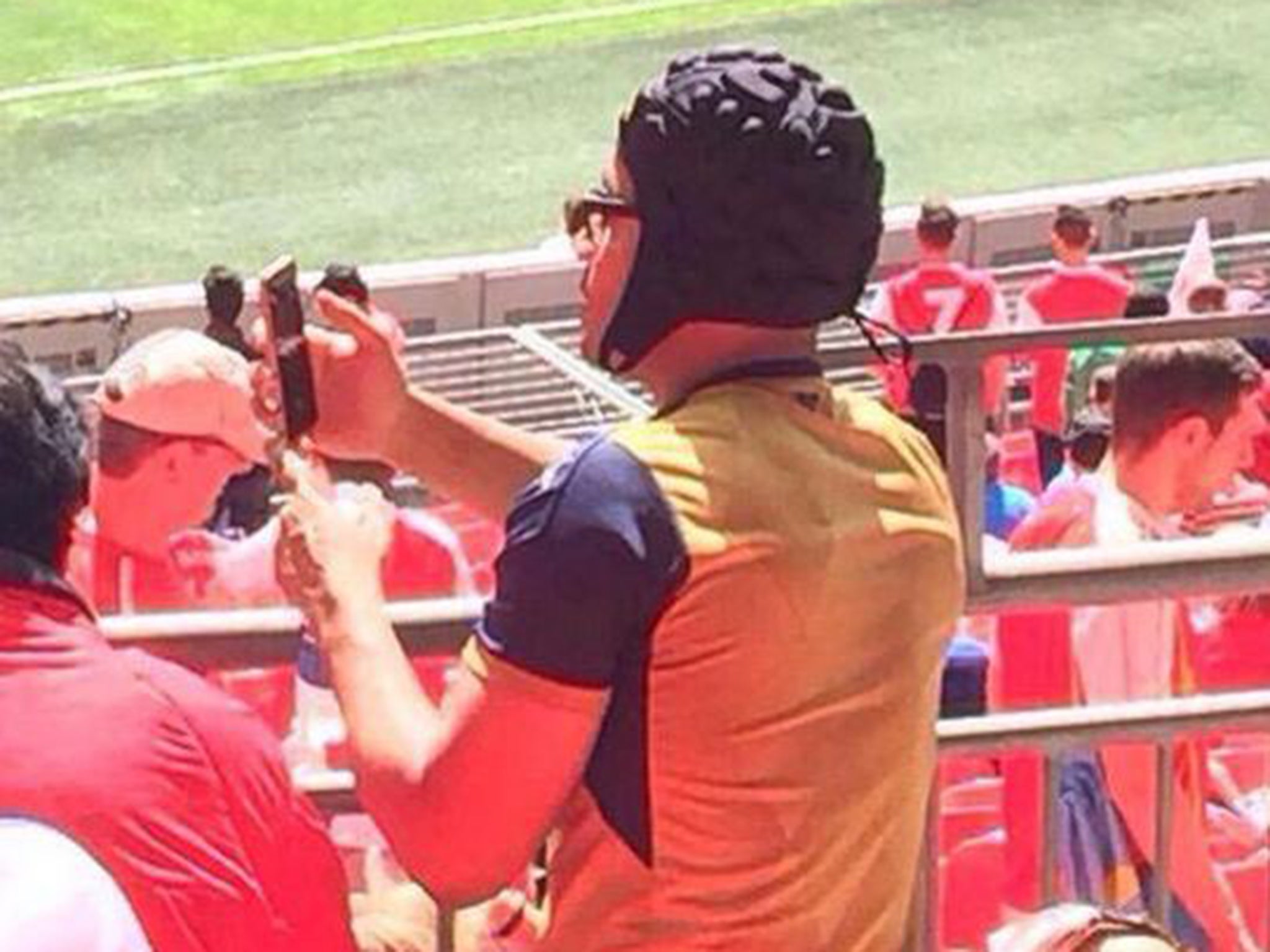 Arsenal supporters embarrass themselves at the Community Shield by wearing Petr Cech hats 'Benzema 9' shirts and full kits