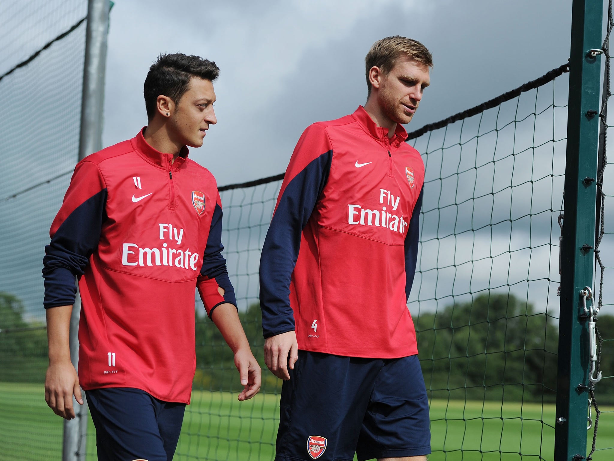 Just for your information, here's the real caption: Mesut Oezil takes part in his first training session at Arsenal along with Per Mertesacker at London Colney on September 12, 2013 in St Albans, England. (Stuart MacFarlane/Arsenal FC via Getty Images)