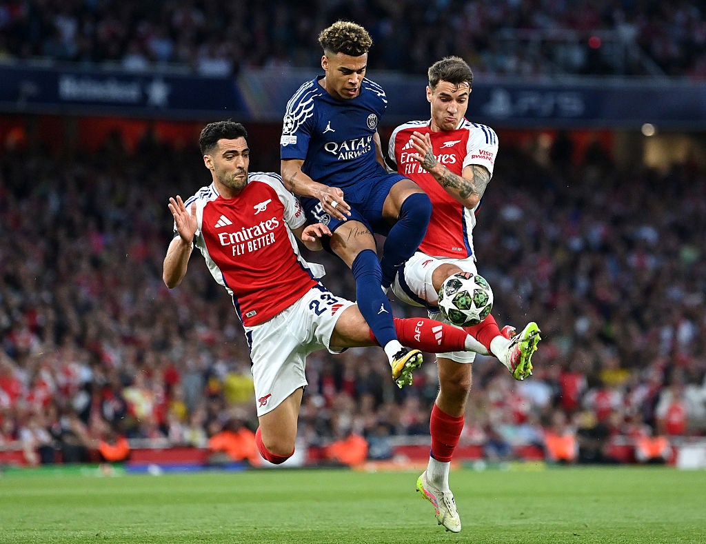 But Mikel Arteta’s side gained a foothold in the semi-final first leg and PSG required goalkeeper Gianluigi Donnarumma to make two excellent saves either side of half time, denying Gabriel Martinelli and Leandro Trossard.