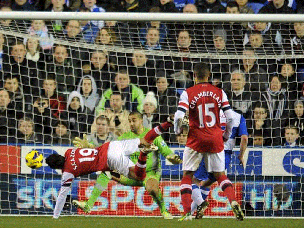The second was a header from the minute Cazorla, who was completely unmarked when Podolski's cross from the left came in and adjusted himself brilliantly to steer in a low header. For the third he was allowed by the Reading defence to control the ball, turn and shoot, from Walcott's cross that was knocked down by Gibbs.