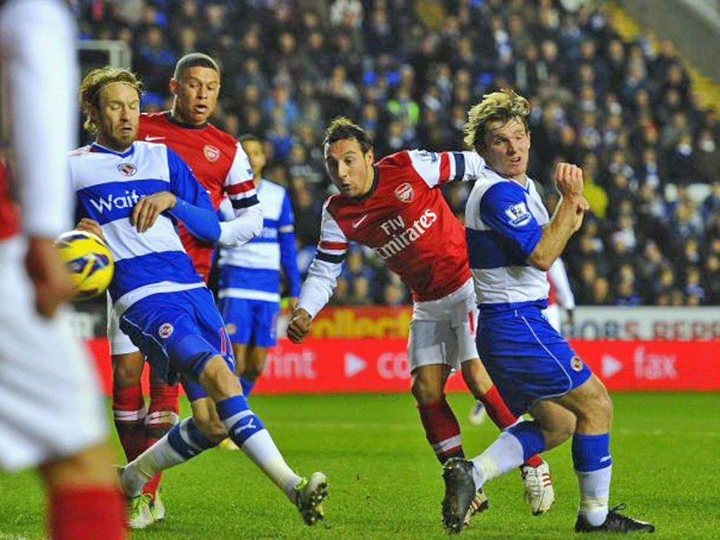 Whether Walcott is back in the centre-forward role come the game against Wigan on Saturday is by no means certain and Wenger would not be drawn on it last night. Certainly it would have helped the player's chances had he scored from his first good chance on 22 minutes when he was played through a static Reading back line by Cazorla