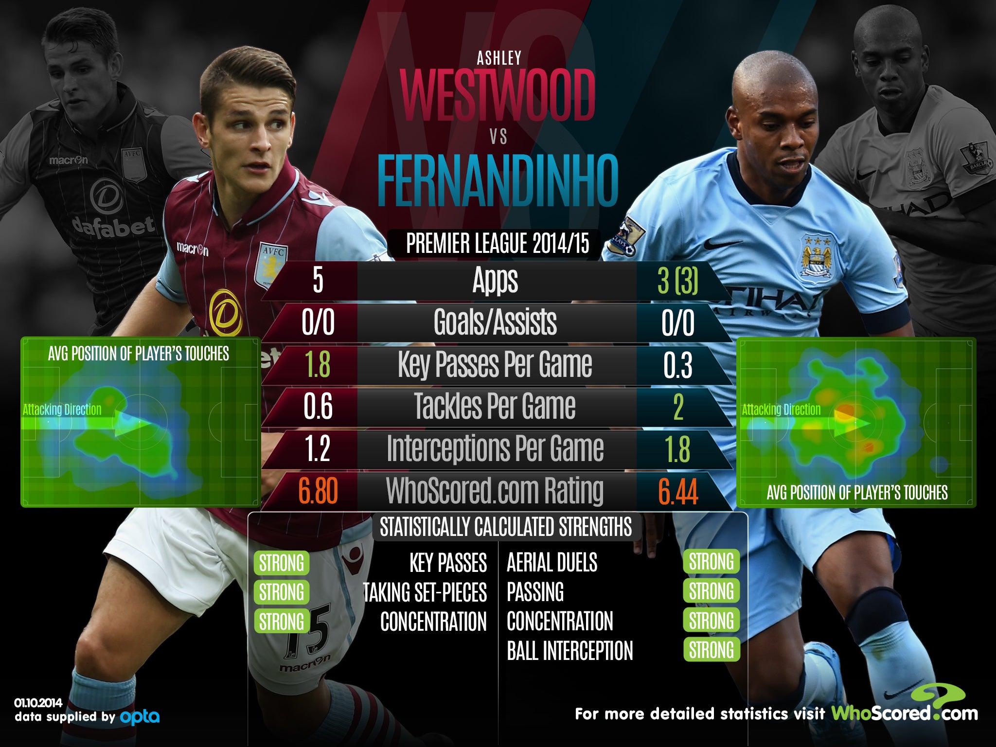 Ahead of the match at Villa Park, we take a look at how the sides' players Ashley Westwood and Fernandinho compare.