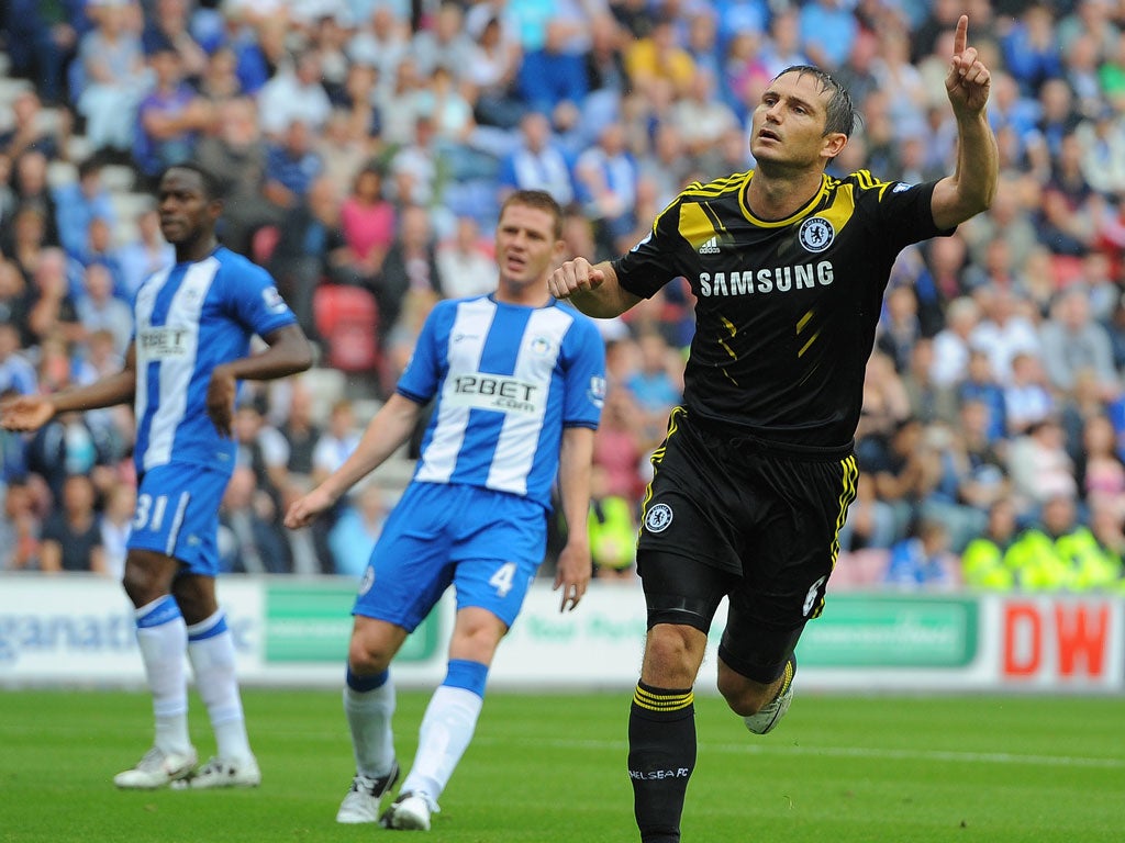 Perhaps Wigan had read too much into last Sunday's Community Shield, in which Hazard's game was notable for a fluffed back-heel that caused him to fall on his face, because his threat still had not dawned on them when his pace took him past Ramis and Maynor Figueroa into the penalty area, where Ramis tripped him. Lampard's penalty was converted low to Ali Al Habsi's left.