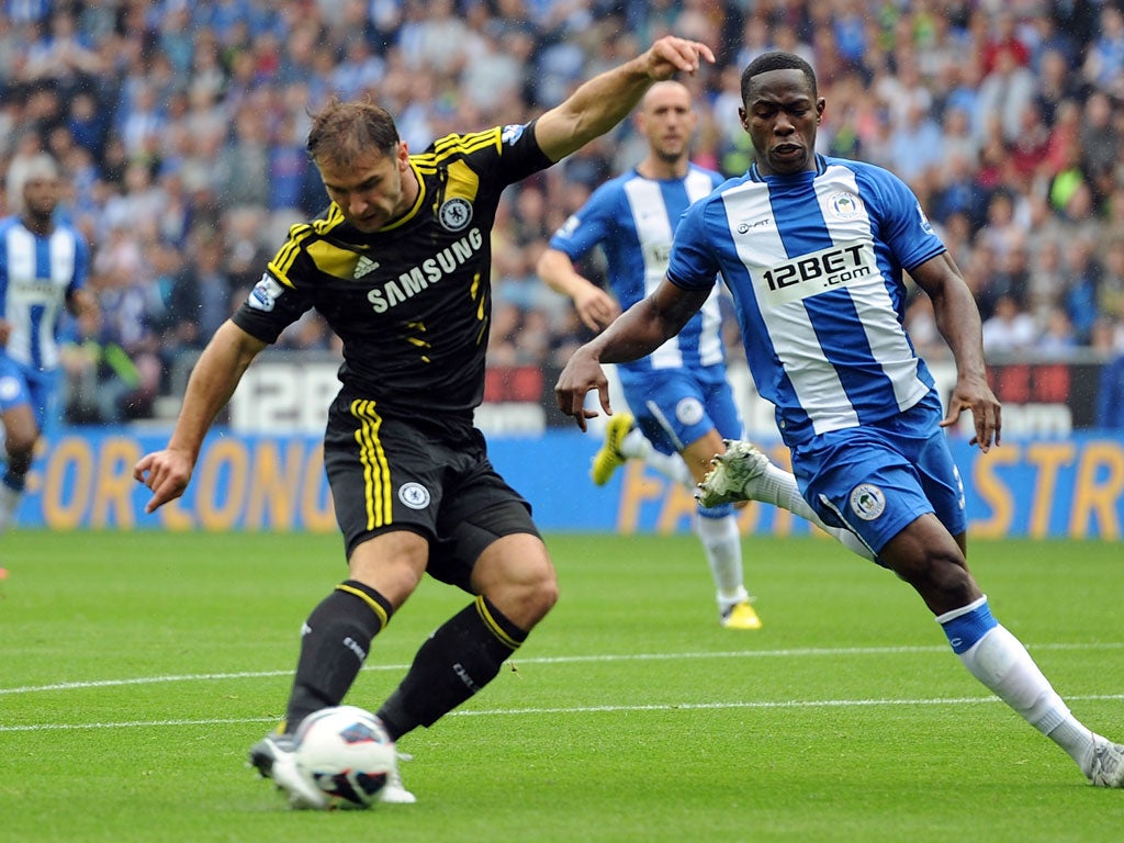 Ivan Ramis, the defender Martinez stole in to sign ahead of West Ham from Real Mallorca, was the less celebrated of yesterday's two debutants, though those first seven minutes were a punishing reality check for the latest Spanish acquisition here. The game was barely into its second minute when Hazard, his back to goal in the centre circle, received a ball processed sharply out of defence through the excellent Juan Mata and Lampard, span on it to leave Ramis rooted, and thundered forward into the empty space that passed for a Wigan midfield. His spacial awareness allowed him to locate Ivanovic running into the inside channel to receive his pass and score, 100 seconds into Chelsea's season.