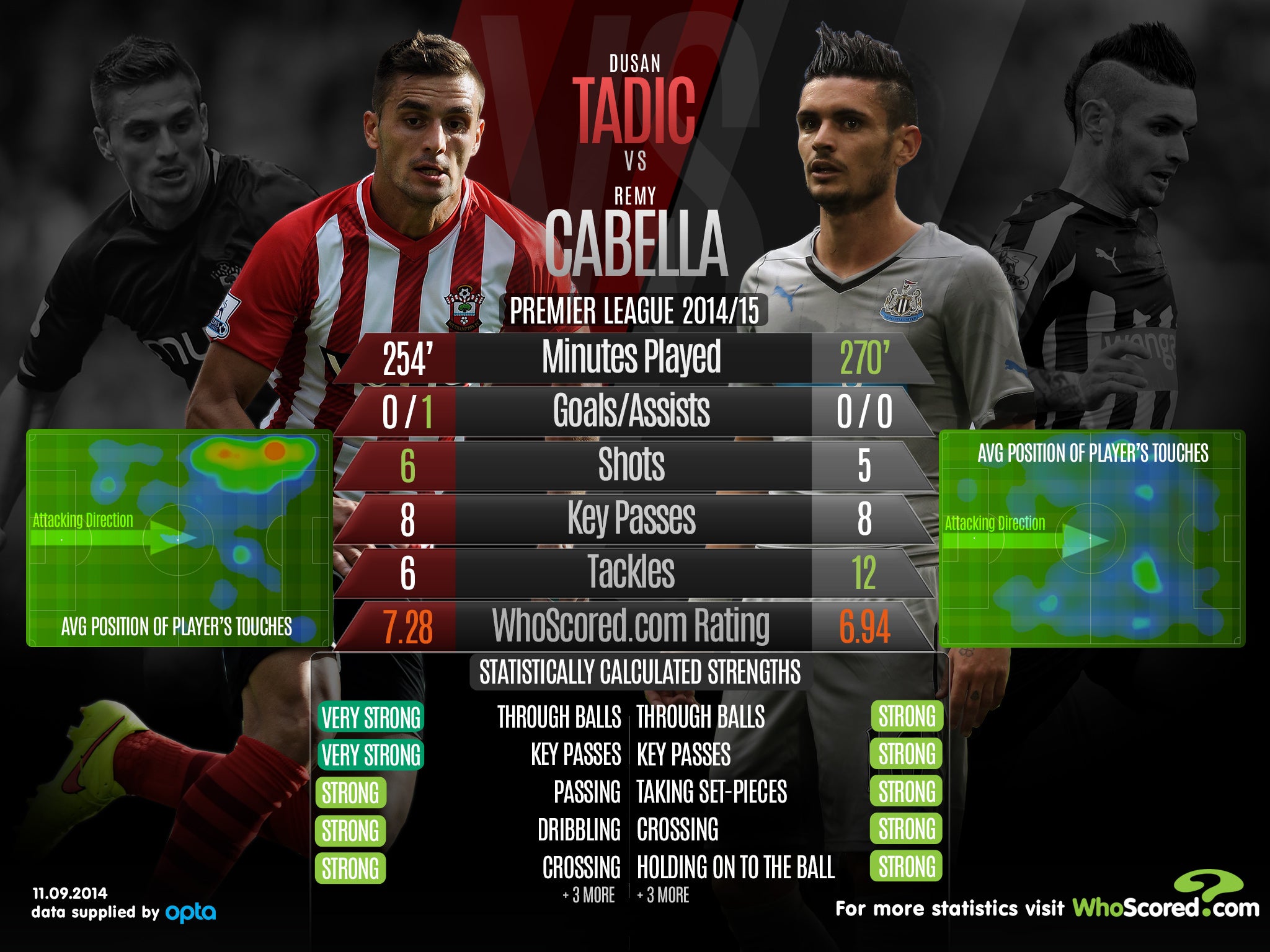 Ahead of the match at St Mary's, we take a look at how the sides' midfielders Dusan Tadic and Remy Cabella compare.