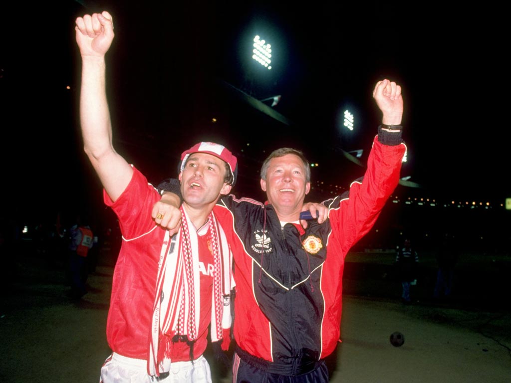 1990 — Wins first trophy at United, the FA Cup after a replay against Crystal Palace in the final.