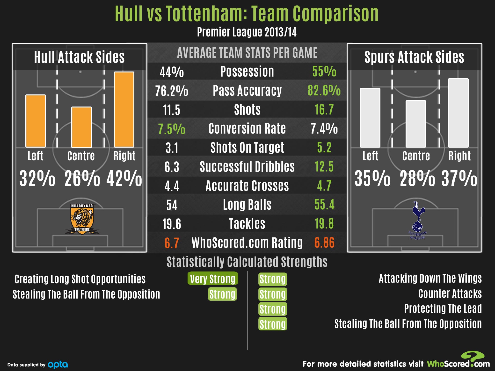 Your support makes all the difference. Read more Ahead of this weekend's Premier League meeting, between Hull City and Tottenham, see how the sides compare on possession, pass accuracy, tactics and much more.