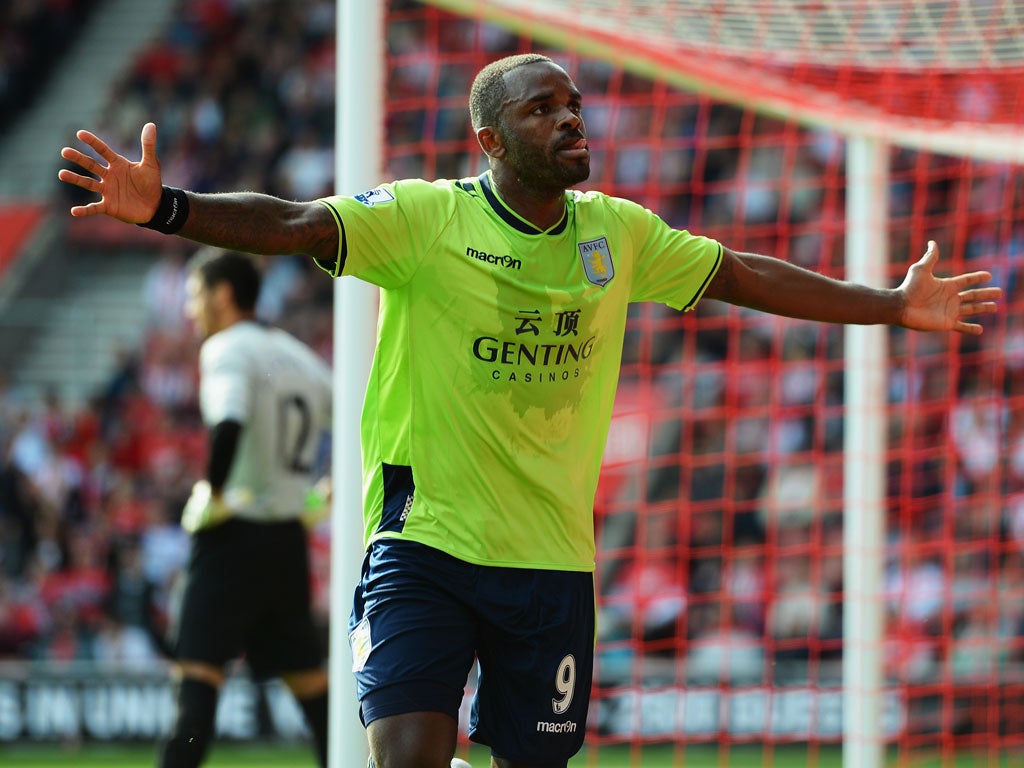 Benteke won his header with ease and when Jose Fonte failed to clear, Stephen Ireland hooked the ball back in. Bent, stealing between Maya Yoshida and Daniel Fox, did the rest.