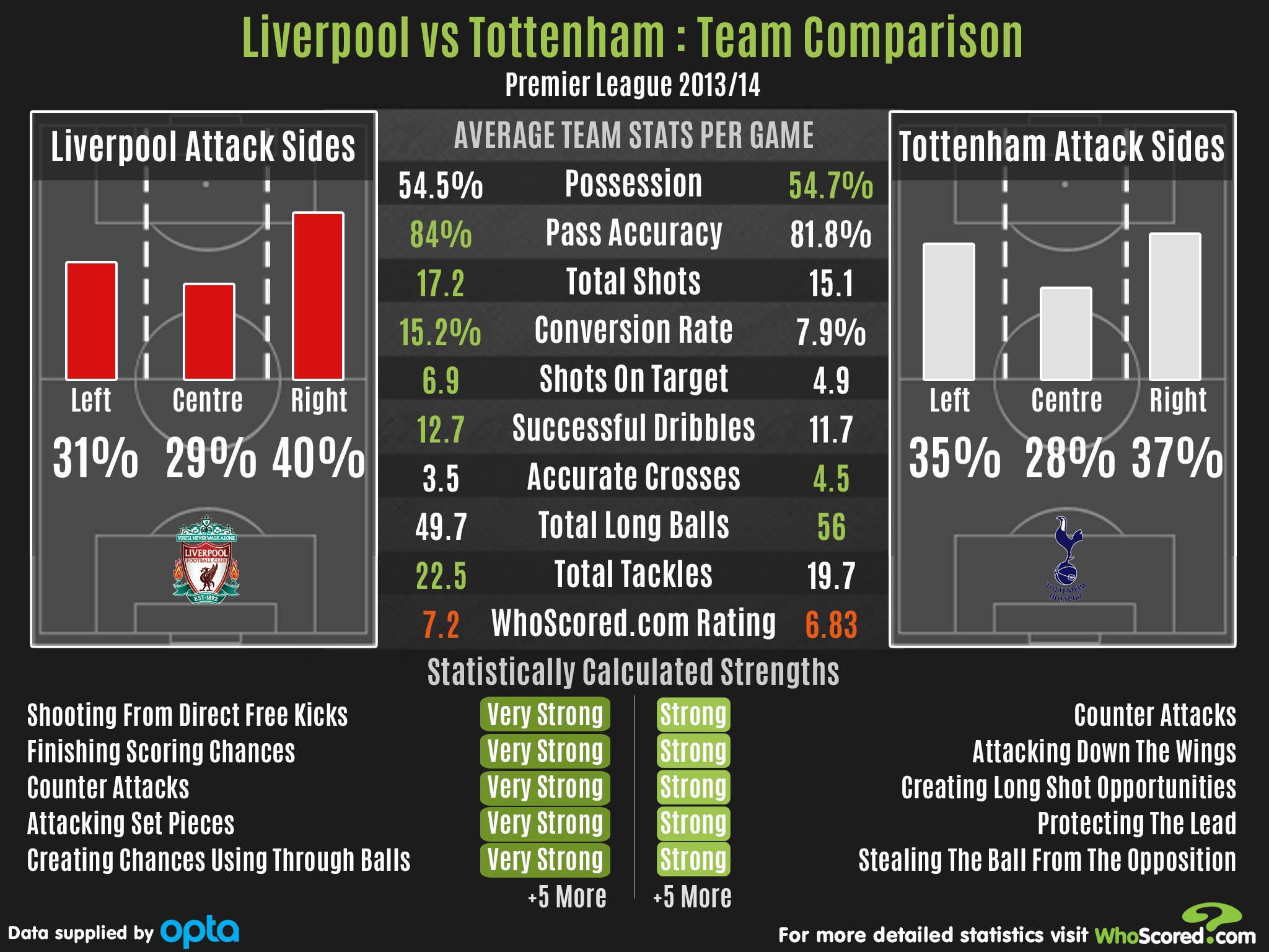 Your support makes all the difference. Read more Ahead of this weekend's Premier League meeting, between Liverpool and Tottenham Hotspur, see how the sides compare on possession, pass accuracy, tactics and much more.