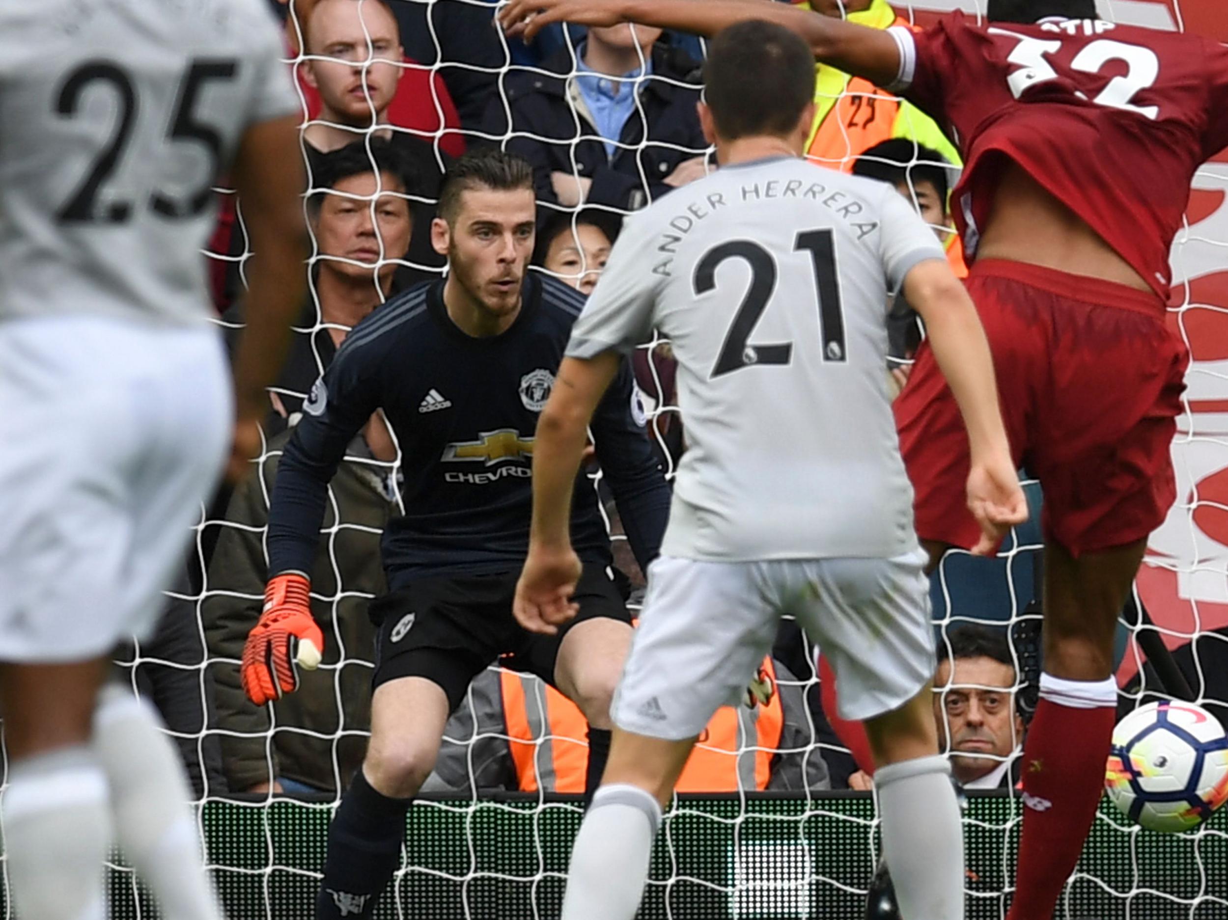 In the first half De Gea made a sensational save to deny Joel Matip what he must have thought would be his first goal at Anfield. From close proximity, the defender prodded a low cross goal bound but De Gea, somehow, outstretched his leg and turned the ball away with an extraordinary reaction save.