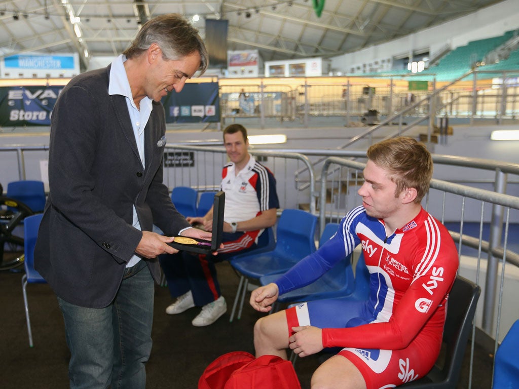 Ferguson's fascination with scientific advancements in sport has made his several subsequent encounters with Brailsford more nuanced than that and Roberto Mancini was also looking for some answers about achievement and management yesterday when he beat his own path to the Manchester Velodrome. The Manchester City manager travelled with more than an inquiring mind. His deep love of cycling was passed down from his father, Aldo, a fan of the twice Tour de France winner Gino Bartali before the Second World War. He grew up absorbed by Eddy Merckx, has brought his four bikes over from Italy, cycles the 35km to Carrington from his home up in Alderley Edge three or four times a week and is about to take possession of a Pinarello model, in City colours. "I cycle when the sun shines, so in Manchester – never," he joked.